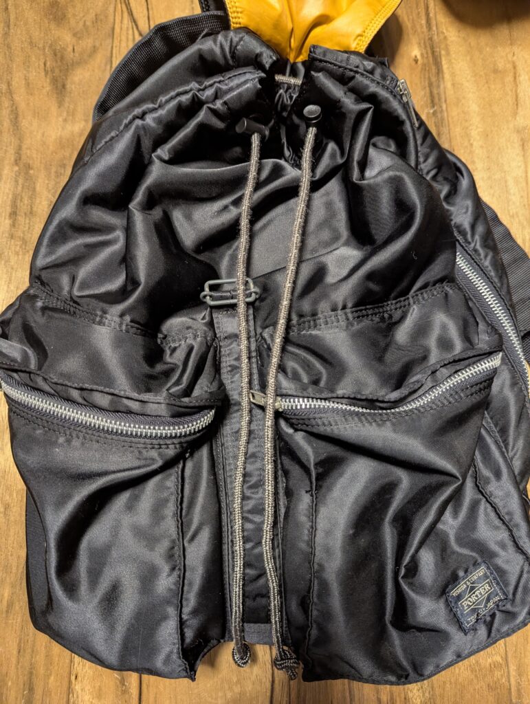 PORTERのTANKERシリーズは、デザイン・機能性ともに優れた名作ですが、リュックサックの巾着部分に関しては少しだけ不便を感じていました。そう、ひもを毎回結ばないといけないんです。